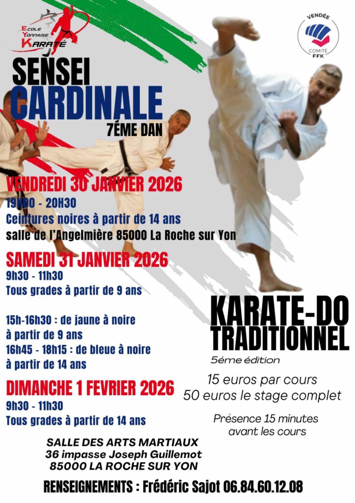 30 JANVIER : stage A CARDINALE ceintures noires (remplace le cours adultes ceintures noires).
